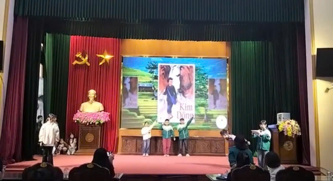 Liên đội trường Tiểu học Lê Hồng Phong tập luyện tiết mục: Hoạt cảnh: “Tự hào truyền thống đội ta” chuẩn bị cho Cháu Ngoan Bác Hồ